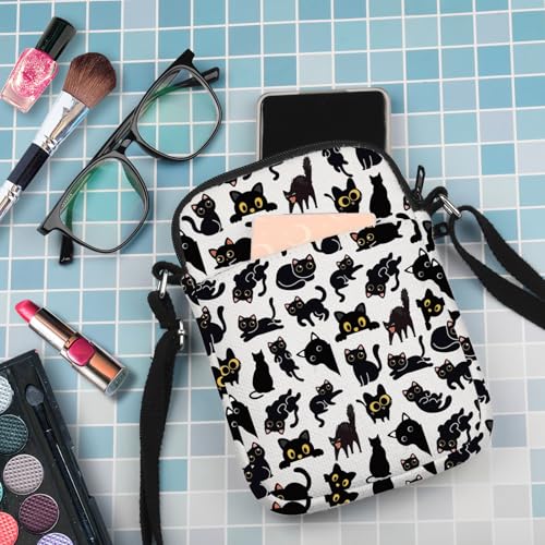 G2TUP Black Cats Lover Gift Black Cat Design Crossbody Bag Pet Cats Mom Travel Bag Kitty Merch