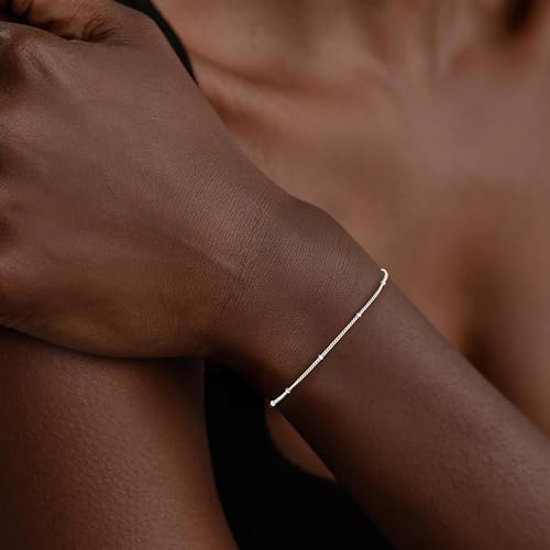 must-have ! S925 Sterling Silver Bead Bracelets for Women - Sterling Silver Bead Chain Bracelet Handmade Jewelry Gold Bracelets for Women 6.5/7/7.5/8 Inch