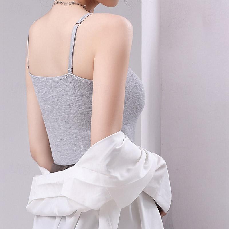 Designed with double thin straps and a strapless neckline, this tank top exudes simplicity and elegance. The built-in chest pads provide convenient support and shaping, eliminating the need for additional undergarments. Its seamless finish ensures a smooth look under any outfit, enhancing versatility.