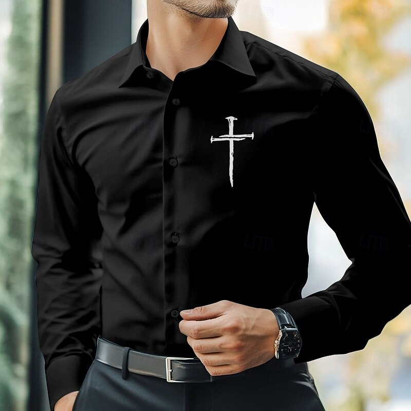 This Men's Dress Shirt Button Up Shirt Cross Formal Business Black White Blue Brown Long Sleeve Shirt Collar Fall Winter Clothing Apparel Button Up combines elegant design with practical functionality. Every detail has been carefully considered to ensure you get the top possible experience. The supreme construction means this product will serve you well for years to come.