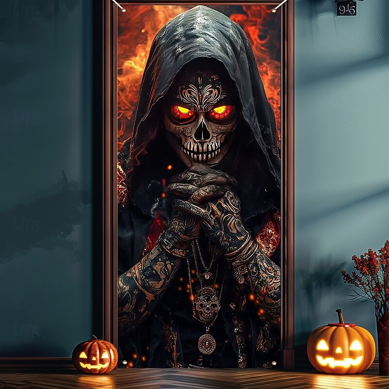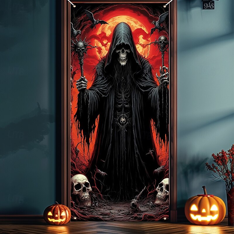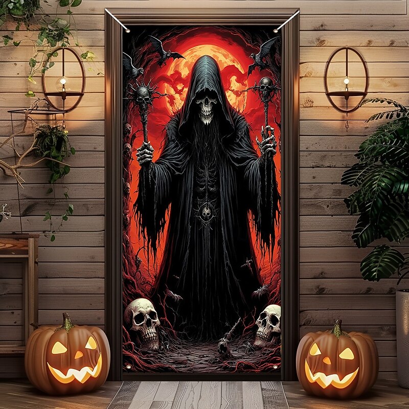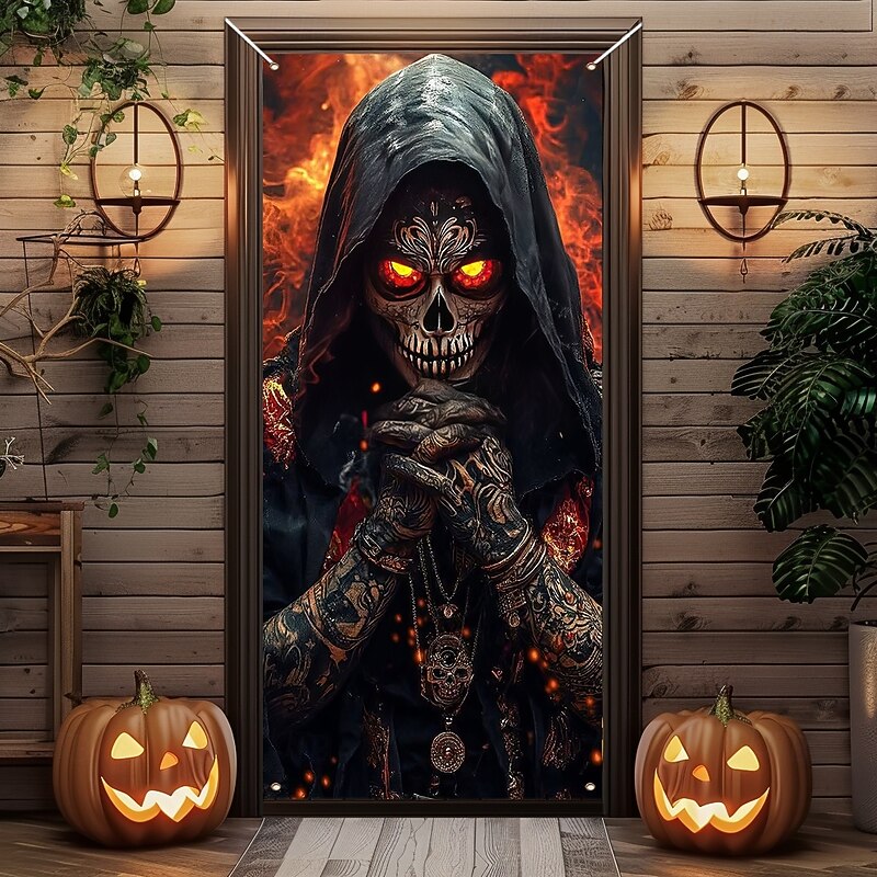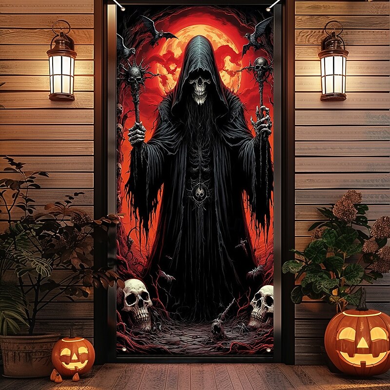$18.99 - Halloween Door Cover Outdoor Banners Skeleton Grim Reaper Fantasy Psychedelic Dark Punk Gothic Style Party Outdoor Shooting Backgrounds Front Door Wall Porch Home Decor 2025. Shop for cheap Halloween Door Covers online? Buy at lightinthebox.com on sale today!