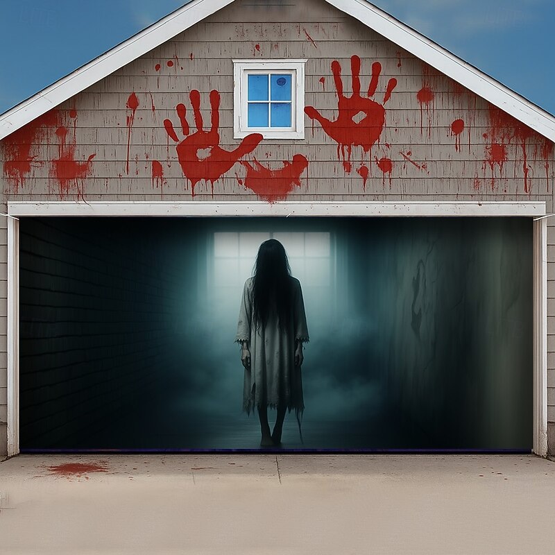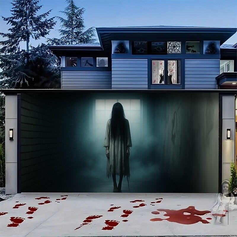 $26.99 - Halloween Garage Door Cover Banner Backdrop – Shadow Figure in Fog, Oversized Garage Door Decoration, Easy to Hang with Adhesive Hooks or Rope, Outdoor Decoration for 2025 Halloween 2025. Shop for cheap Halloween Garage Door Cover online? Buy at lightinthebox.com on sale today!