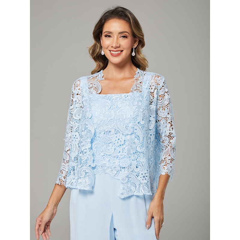This Pantsuit 3 Piece Mother of the Bride Dress Formal Wedding Guest Elegant Wrap Included Square Neck Floor Length Chiffon Lace Sleeveless Wrap Included with Appliques combines elegant design with practical functionality. Every detail has been carefully considered to ensure you get the best possible experience. The exceptional construction means this product will serve you well for years to come.