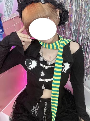 More information about Goth Thin Scarf Y2k Striped Scarf Gothic Neckerchief Belt Grunge Accessories Alt Accessories Emo Stuff Streetwear