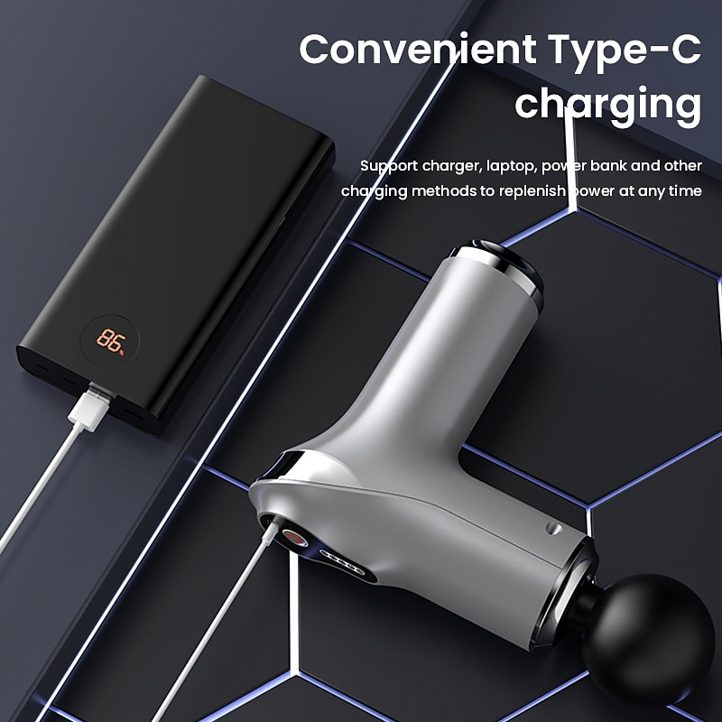 Highlights Introducing the Mini Fascia Gun - the compact and powerful solution to your muscle recovery needs. Equipped with a reliable brush motor, this device provides efficient and effective relief to sore muscles. With a charging voltage of 5V and a voltage of 7.4v, the Mini Fascia Gun packs a punch with a rated power of 24W. With 5 adjustable gears on a convenient button feature, you can easily customize your massage experience. The motor speed ranges from 1800-3200, ensuring optimal relief for your specific needs. The battery holds an impressive 1200 x 2 capacity, allowing for longer sessions without interruption. Additionally, this device only requires about 2 hours to fully charge. Measuring at a compact 5.03 * 5.43* 1.69 inches, the Mini Fascia Gun is the outstanding size for on-the-go relief. Don't wait any longer to experience the benefits of this powerful recovery tool. Perfect for everyday use. premium materials and excellent craftsmanship ensure long-lasting durability.