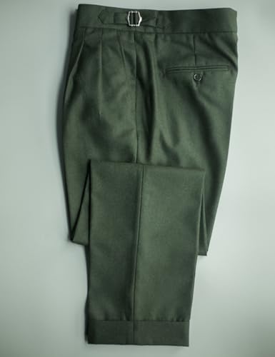 must-have ! Snoly Men's Winter Retro Woolen Gurkha Flat Front Pant Tapered Leg Straight Chino Rolled Pants Buckle Back