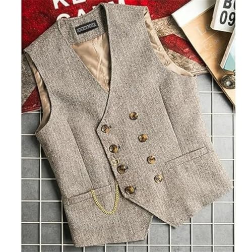 Fabric type: WoolCare instructions: Machine WashFabric: This retro V-neck suit vest is made of high-quality tweed wool herringbone fabric, which is thick and textured. It is not only warm, but also has a retro and elegant style. The unique texture of tweed enhances the overall texture.Features: The double-breasted design is the highlight of this vest, continuing the traditional British retro style and enhancing the overall layering and formality. The V-neck is neatly cut and effectively modifies the neck line. Three practical pockets are both lovely and practical.Design: The business vest adopts a classic solid color design, V-neck, five-button opening and closing, one pocket on each side of the front, and one pocket on the chest, making you stand out from the crowd.Applicable occasions: This vest is suitable for a variety of semi-formal or casual occasions, such as business casual gatherings, weddings, afternoon tea or daily commuting. It can be paired with a suit jacket to enhance the sense of formality, or it can be worn alone to show a casual and capable temperament.Matching skills: tie/bow tie/shirt/suit/tuxedo/suit/jacket/pants/leather shoes, making you look eye-catching and handsome. This suit vest is suitable for all occasions, such as business, wedding, banquet, date, work, party or daily wear. Perfect for everyday use. premium materials and excellent craftsmanship ensure long-lasting durability.